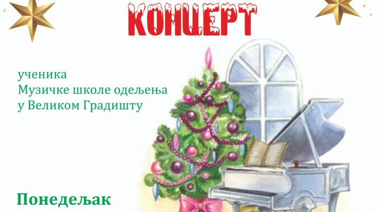 У понедељак, 22. децембра 2025. године у 17 часова, у сали Гимназије у Великом Градишту одржаће се Новогодишњи концерт ученика Музичке школе, одељења у Великом Градишту.